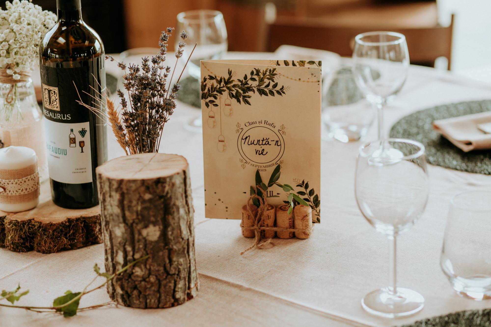 Decorul a inglobat dopuri de vin colectionate de noi de-a lungul anilor, flori de lavanda, floarea soarelui si in general, elemente de inspiratie rustica si naturala.